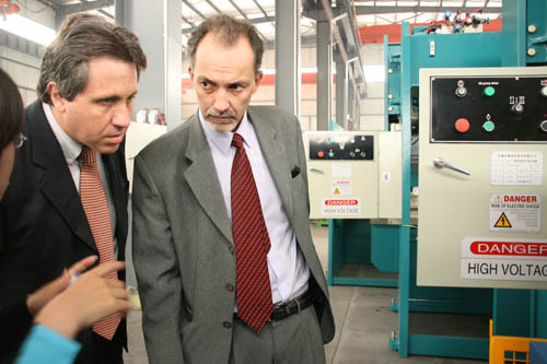 Aldo Strobbe Turk师长教师和(he)Michael Can师长教师别离是(shi)秘(mi)鲁一(yi)家(jia)专业机(ji)器收支口公司(si)(si)(si)(si)的(de)推销司(si)(si)(si)(si)理(li)(li)和(he)发(fa)卖(mai)司(si)(si)(si)(si)理(li)(li)。他们此行的(de)目(mu)标(biao)是(shi)对(dui)我(wo)公司(si)(si)(si)(si)停止实(shi)地观(guan)赏(shang)(shang)考查(cha),并(bing)追求以中(zhong)德在(zai)秘(mi)鲁独家(jia)代办署理(li)(li)的(de)情势与(yu)中(zhong)德告竣(jun)协作(zuo)动向(xiang)。公司(si)(si)(si)(si)带(dai)(dai)领热忱地欢(huan)迎(ying)了两(liang)位(wei)外商(shang)。公司(si)(si)(si)(si)带(dai)(dai)领起首给(ji)秘(mi)鲁客商(shang)先容了我(wo)公司(si)(si)(si)(si)最近几年来产(chan)(chan)物(wu)的(de)研发(fa)、出(chu)(chu)产(chan)(chan)、发(fa)卖(mai)环境和(he)我(wo)公司(si)(si)(si)(si)产(ꦇchan)(chan)物(wu)在(zai)国际外市场的(de)影响和(he)位(wei)置。随后伴(ban)随外商(shang)观(guan)赏(shang)(shang)了制品(pin)车(che)间并(bing)现场演(yan)示运转(zhuan)了机(ji)器,拆(chai)卸车(che)间,大件车(che)间和(he)整机(ji)堆栈。观(guan)赏(shang)(shang)完后,两(liang)位(wei)秘(mi)鲁客商(shang)都对(dui)我(wo)公司(si)(si)(si)(si)产(chan)(chan)物(wu)的(de)机(ji)型型号(hao)、出(chu)(chu)产(chan)(chan)制作(zuo)手艺、零配件等(deng)诸多方面很是(shi)对(dui)劲(jing),并(bing)愿以在(zai)秘(mi)鲁独家(jia)代办署理(li)(li)的(de)情势与(yu)中(zhong)德成立持(chi)久不变(bian)的(de)协作(zuo)干系。